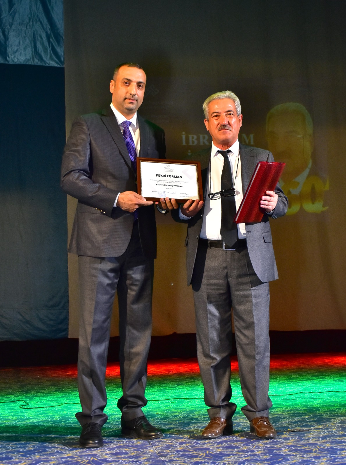 Sumqayıt Regional Mədəniyyət İdarəsinin rəisi Rəşad Əliyev 60 illik yubileyi münasibəti ilə İbrahim İlyaslının adına yazılan ünvanı tədbir iştirakçılarının diqqətinə çatdırıb, onu idarənin Fəxri Fərmanı ilə təltif edib.